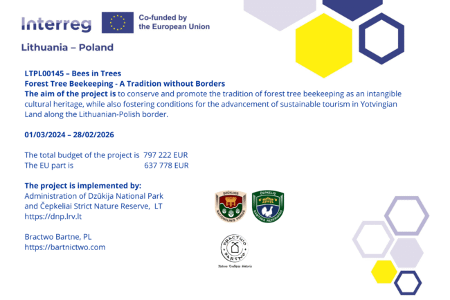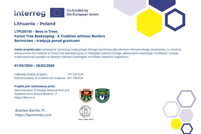 Wydarzenie stanowi zwieńczenie ponad dwuletniego, projektu „Bartnictwo – tradycja ponad granicami”, realizowanego przez Bractwo Bartne we współpracy z Dzukijskim Parkiem Narodowym na Litwie. Projekt „Bartnictwo – tradycja ponad granicami” (TPL00145) został współfinansowany ze środków Unii Europejskiej w ramach programu INTERREG Litwa–Polska.